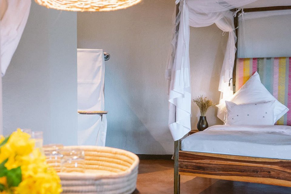 Die Zimmer sind alle stilvoll eingerichtet und verfügen jeweils über ein eigenes Bad. Du hast die Wahl zwischen, einem Doppelzimmer (Doppelbett), einem Doppelzimmer zur Einzelnutzung und einem Luxus Zimmer (dieses verfügt über eine private Terrasse, einen Kamin, eine Kaffeebar, täglich Wein und frisches Obst). Neu hat Kambaku 3 Safari-Bungalows. Diese befinden sich etwas ausserhalb des Lodge-Geländes mit atemberaubendem Blick auf die Savanne und das Wasserloch – ideal, wenn du gerne noch näher an der Natur bist und etwas mehr Ruhe haben möchtest. Die Bungalows sind genauso gross wie die Standardzimmer und verfügen über ein eigenes Badezimmer mit Toilette und Dusche.